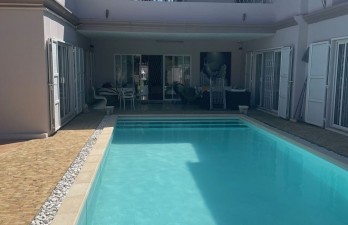 Cette villa aux volumes généreux offre tout confort et est très bien équipée: portail électrique, garag avec volet électrique, alarme, 2 réservoirs d'eau + pompe et générateur. La maison se trouve dans jardin arboré avec piscine, gazebo, gym avec sauna et un abri de jardin.Au rez-de-chaussée: entrée, grande pièce de vie en L avec cuisine ouverte, arrière-cuisine, garage, buanderie, chambre d'amis, salle de douche et une belle terrasse couverte.A l'étage: grand salon TV, 2 chambres, salle de douche, suite parentale avec dressing et salle de bain, un balcon. Toutes les chambres sont climatisées.